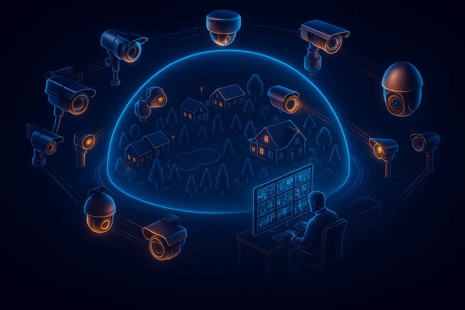 Cubrimos grandes superficies de terreno, como barrios privados y countries, implementanto un sistema de anillos de seguridad inteligente que establecen diferentes niveles de protección y reducen al máximo el riesgo de intrusiones.